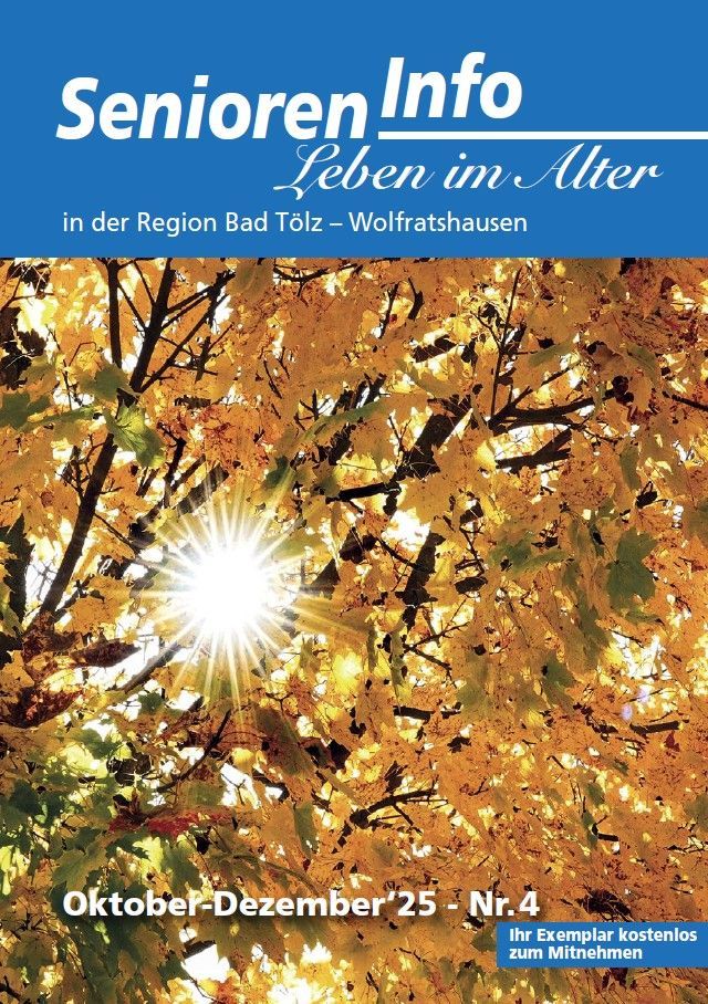 Seniorenforum e.V im Landkreis Bad Tölz-Wolfratshausen mit wichtigen Informationen und Veranstaltungen für Senioren erscheint vierteljährlich und ist kostenlos erhältlich bei allen Stadt- und Gemeindeverwaltungen des Landkreises sowie verschiedentlich bei Apotheken, Ärzten, Bürgerbüro.....
